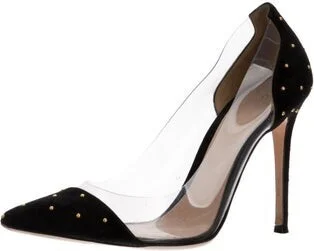 Gianvito Rossi Suede Pumps Black Pointed-Toes with Studded Accents Designer Fit: Pumps by Gianvito Rossi typically run a half size small. Read more