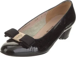 Salvatore Ferragamo Patent Leather Pumps Black Vara Bow Accent Semi-Pointed Toes Fit: This style typically runs a half size small.