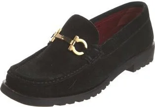 Salvatore Ferragamo Suede Loafers Black Round-Toes Platform Fit: This style typically runs a half size small. Read more
