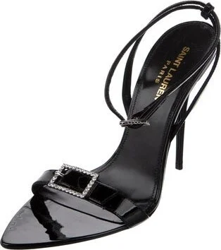 Saint Laurent Patent Leather Slingback Sandals Black Crystal Embellishments Buckle Closure at Ankles Includes Dust Bag Fit: Sandals by Saint Laurent typically run small, consider taking a half size up Read more