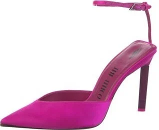 Attico Satin D'Orsay Pumps Pink Pointed-Toes Wrap-Around Straps & Buckle Closure at Ankles Designer Fit: Pumps by Attico typically run true to size.