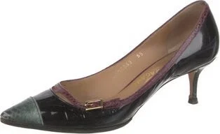 Ferragamo Patent Leather Pumps Black Semi-Pointed Toes with Cutout Accent Buckle Closure At Uppers Read more