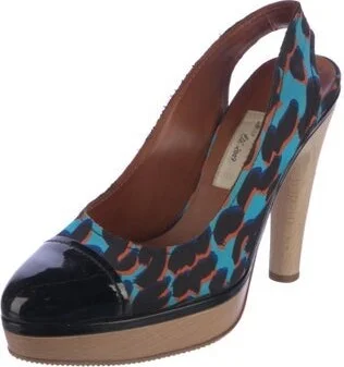 Lanvin Nylon Slingback Pumps Printed Patent Leather Trim Semi-Pointed Toes Platform Fit: This style typically runs a half size small. Read more