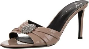 Giuseppe Zanotti Patent Leather Slides Neutrals Crystal Embellishments Fit: This style typically runs a half size small. Read more
