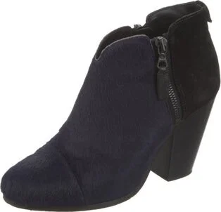 Rag & Bone Suede Ankle Boots Black & Blue Round-Toes Exposed Zip Closure at Sides Designer Fit: Boots by Rag & Bone typically run a half size small.