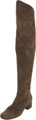 Saint Laurent Suede Over-The-Knee Boots Brown Round-Toes Concealed Zip Closure at Sides Fit: This style typically runs a half size small.