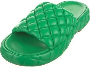Bottega Veneta Leather Slides Green Quilted Pattern Includes Dust Bag Designer Fit: Sandals by Bottega Veneta typically run a half size small. Unfortunately, due to restrictions, this item may not be eligible for shipping in all areas.