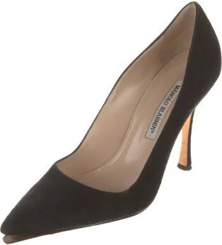 Manolo Blahnik Suede Pumps Black Pointed-Toes Fit: This style typically runs narrow and a half size small.