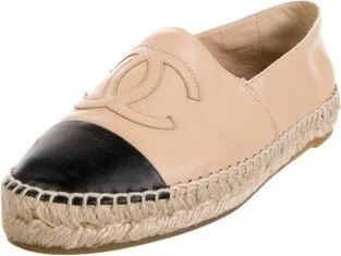 Chanel Leather Espadrilles Neutrals Interlocking CC Logo Jute Trim Round-Toes Platform Includes Box Designer Fit: This style typically runs narrow and a half size to a full size small. Unfortunately, Read more