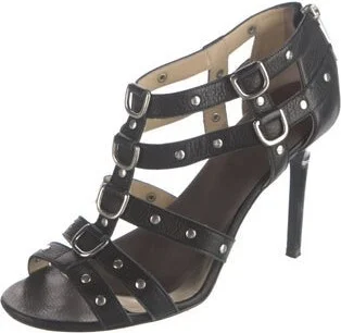 Jimmy Choo Leather T-Strap Sandals Black Studded Accents Multistrap & Exposed Zip Closure at Sides Includes Box & Dust Bag Fit: This style typically runs a full size small. Unfortunately, due to restr Read more