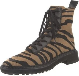 Loeffler Randall Ankle Combat Boots Neutrals Animal Print Round-Toes Lace-Up Closure at Uppers