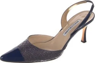 Manolo Blahnik Leather Slingback Pumps Black Pointed-Toes Straps Includes Box & Dust Bag Fit: This style typically runs narrow and a half size small. Unfortunately, due to restrictions, this item may not be eligible for shipping in all areas.