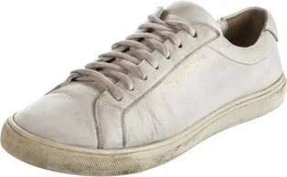 Saint Laurent Leather Low Top Sneakers White Round-Toes Lace-Up Closure at Uppers Unfortunately, due to restrictions, this item may not be eligible for shipping in all areas. Read more