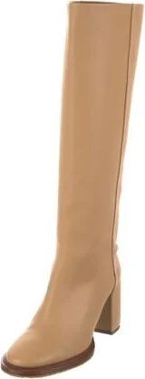 Chloé Leather Knee-High Riding Boots Neutrals Rubber Trim Round-Toes Platform Fit: This style typically runs a half size small. Unfortunately, due to restrictions, this item may not be eligible for shipping in all areas.