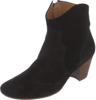 Étoile Isabel Marant Suede Ankle Western Boots Black Round-Toes Concealed Zip Closure at Sides Read more