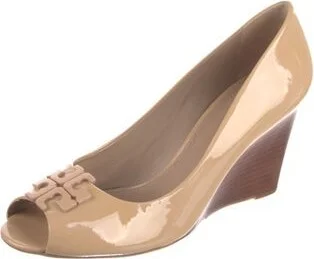 Tory Burch Patent Leather Pumps Neutrals Peep-Toes Designer Fit: This designer typically runs true to size.