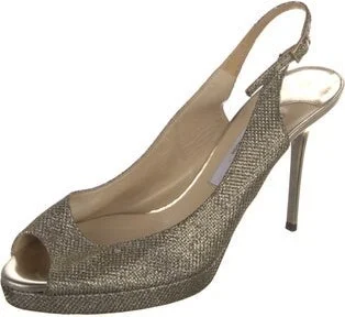 Jimmy Choo Leather Slingback Sandals Gold Straps & Buckle Closure at Ankles Fit: This style typically runs a full size small. Unfortunately, due to restrictions, this item may not be eligible for shipping in all areas.