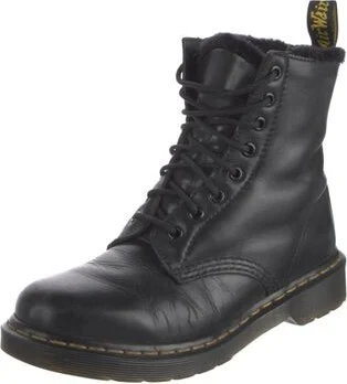 Dr. Martens Leather Mid-Calf Combat Boots Black Round-Toes Platform Lace-Up Closure at Uppers Unfortunately, due to restrictions, this item may not be eligible for shipping in all areas. Read more