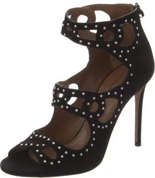 Aquazzura Suede Sandals Black Studded Accents Multistrap & Exposed Zip Closure at Ankles Read more