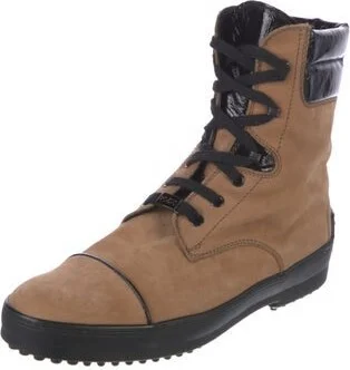 Tod's Suede Mid-Calf Lace-Up Boots Brown Colorblock Pattern Round-Toes Lace-Up Closure at Uppers Read more
