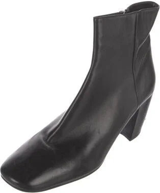 Prada Leather Ankle Boots Black Square-Toes Concealed Zip Closure at Sides Fit: This style typically runs a half size small. Unfortunately, due to restrictions, this item may not be eligible for shipping in all areas.