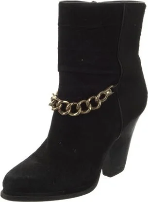 3.1 Phillip Lim Suede Ankle Boots Black Colorblock Pattern Ponyhair Trim Semi-Pointed Toes with Chain-Link Accents Wrap-Around Straps & Exposed Zip Closure at Sides Designer Fit: This designer typical Read more