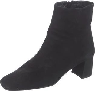 Prada Suede Ankle Boots Black Square-Toes Concealed Zip Closure at Sides Fit: This style typically runs a half size small.