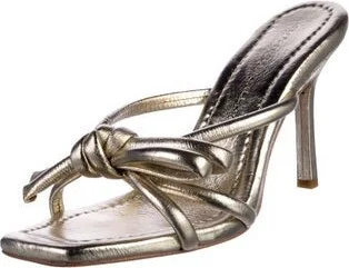 Loeffler Randall Leather Slides Gold & Metallic Bow Accents Unfortunately, due to restrictions, this item may not be eligible for shipping in all areas.