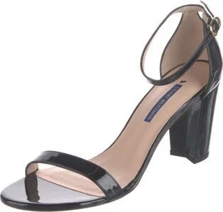 Stuart Weitzman Patent Leather Sandals Black Wrap-Around Straps & Buckle Closure at Ankles Includes Box Designer Fit: This designer typically runs true to size. Read more
