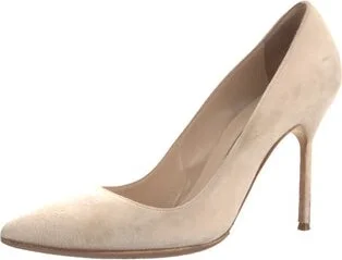 Manolo Blahnik Suede Pumps Neutrals Semi-Pointed Toes Fit: This style typically runs narrow and a half size small.