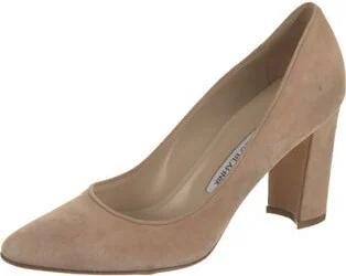 Manolo Blahnik Suede Pumps Neutrals Semi-Pointed Toes Fit: This style typically runs narrow and a half size small.