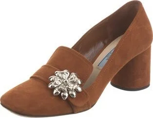 Prada Suede Pumps Brown Round-Toes Platform Designer Fit: Pumps by Prada typically run a half size small. Read more