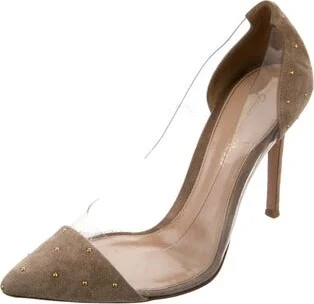Gianvito Rossi Suede D'Orsay Pumps Neutrals Pointed-Toes with Studded Accents Designer Fit: Pumps by Gianvito Rossi typically run a half size small. Read more