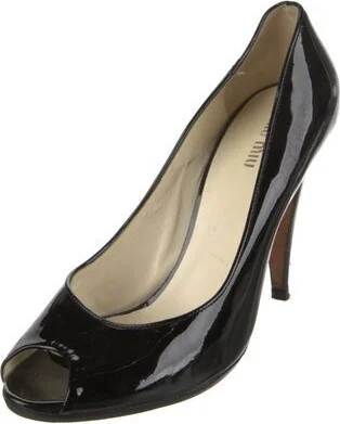 Miu Miu Patent Leather Pumps Black Peep-Toes Designer Fit: Pumps by Miu Miu typically run a half size small. Read more