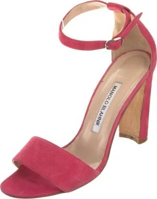 Manolo Blahnik Suede Sandals Pink Wrap-Around Straps & Buckle Closure at Ankles Fit: This style typically runs narrow and a half size small. Read more