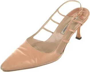 Manolo Blahnik Leather Slingback Pumps Neutrals Semi-Pointed Toes Buckle Closure at Ankles Includes Box & Dust Bag Fit: This style typically runs narrow and a half size small. Unfortunately, due to re Read more