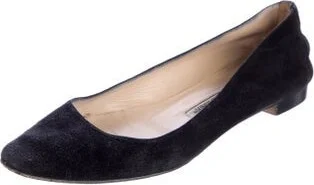 Manolo Blahnik Suede Flats Black Semi-Pointed Toes Designer Fit: This style typically runs narrow and a half size small. Read more
