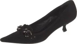 Prada Suede Pumps Black Bow & Chain-Link Accents Pointed-Toes Designer Fit: Pumps by Prada typically run a half size small. Read more