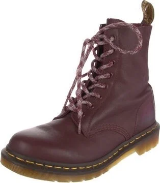 Dr. Martens Leather Ankle Combat Boots Burgundy Round-Toes Lace-Up Closure at Uppers Unfortunately, due to restrictions, this item may not be eligible for shipping in all areas. Read more