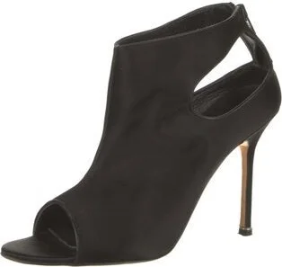Manolo Blahnik Suede T-Strap Pumps Black Peep-Toes Fit: This style typically runs narrow and a half size small.