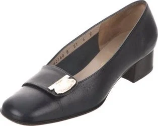 Salvatore Ferragamo Leather Pumps Blue Square-Toes Includes Box Fit: This style typically runs a half size small. Unfortunately, due to restrictions, this item may not be eligible for shipping in all areas.