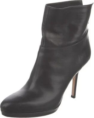 Jimmy Choo Leather Ankle Boots Black Semi-Pointed Toes Platform Zip Closures at Shafts Fit: This style typically runs a full size small. Unfortunately, due to restrictions, this item may not be eligib Read more