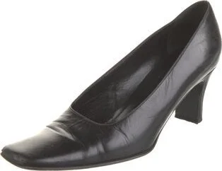 Prada Leather Pumps Black Square-Toes Designer Fit: Pumps by Prada typically run a half size small. Unfortunately, due to restrictions, this item may not be eligible for shipping in all areas.