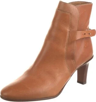 Chloé Leather Ankle Boots Brown & Neutrals Semi-Pointed Toes Wrap-Around Straps & Peg-In-Hole Closure at Sides Fit: This style typically runs a half size small. Unfortunately, due to restrictions, th Read more