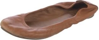 Tory Burch Leather Ballet Flats Brown Semi-Pointed Toes Designer Fit: This designer typically runs true to size. Unfortunately, due to restrictions, this item may not be eligible for shipping in all a Read more