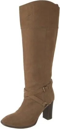 Tory Burch Suede Knee-High Boots Neutrals Square-Toes Platform Wrap-Around Straps & Concealed Zip Closure at Sides Designer Fit: This designer typically runs true to size.