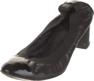 Chanel Leather Pumps Black Interlocking CC Logo Patent Leather Trim Round-Toes Designer Fit: This style typically runs narrow and a half size small. Unfortunately, due to restrictions, this item may n Read more