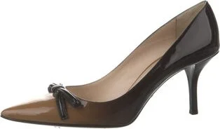 Prada Patent Leather Pumps Black Semi-Pointed Toes with Bow Accents Includes Dust Bag Designer Fit: Pumps by Prada typically run a half size small. Read more