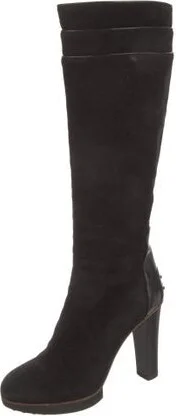 Tod's Suede Knee-High Boots Black Round-Toes Platform Concealed Zip Closure at Sides Read more
