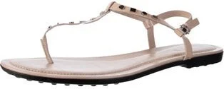 Tod's Leather T-Strap Sandals Neutrals Studded Accents Straps Size not listed, estimated from measurements. Unfortunately, due to restrictions, this item may not be eligible for shipping in all areas. Read more